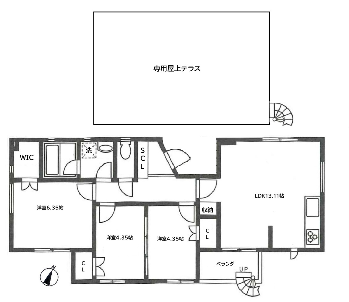 バス、トイレ別 / エアコン完備 / 追い焚き機能付き浴槽 / ルーフバルコニー / BS/CS対応 / システムキッチン