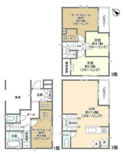 ルーフバルコニー / バス、トイレ別