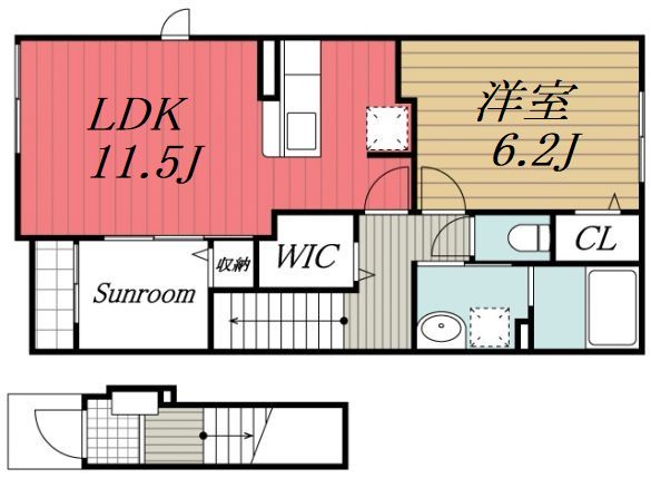 ルーフバルコニー / バス、トイレ別 / エアコン完備 / 追い焚き機能付き浴槽