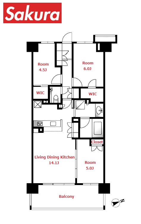 ウォークインクローゼット / BS/CS対応 / インターネット利用可 / システムキッチン / エアコン完備 / 温水洗浄便座 / 追い焚き機能付き浴槽 / バス、トイレ別 / 浴室乾燥機 / ルーフバルコニー