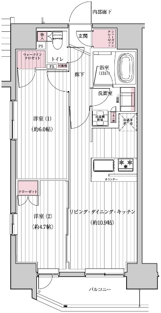バス、トイレ別 / インターネット利用可 / ルーフバルコニー
