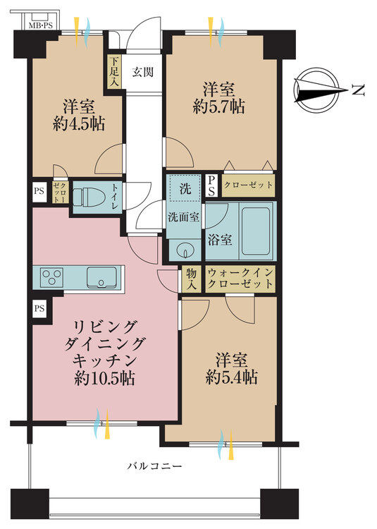3LDK / 57.62㎡(専有面積)
