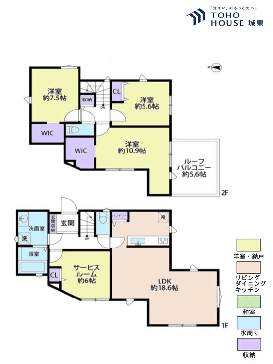 バルコニー / ルーフバルコニー / バス・トイレ別 / 温水洗浄便座 / 追焚機能 / 浴室乾燥機 / 浴室に窓 / ウォークインクローゼット / クローゼット / シューズボックス / 全居室収納