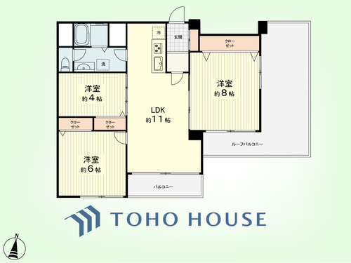 バルコニー / ルーフバルコニー / 南面バルコニー / バス・トイレ別 / オートバス / 追焚機能 / 浴室乾燥機 / 温水洗浄便座 / 独立洗面台 / 脱衣所あり / 洗濯機置き場(室内) / 洗濯機置き場(有) / クローゼット / シューズボックス / 全居室収納