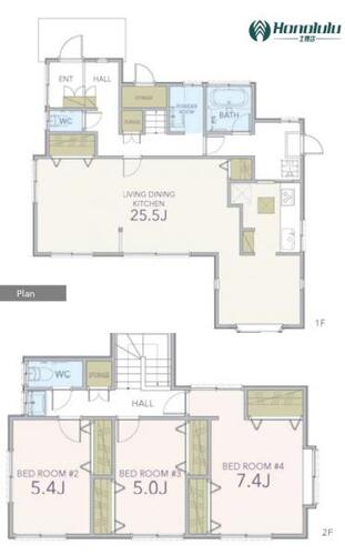 | 備考 | 駐車場:空有 システムキッチン、独立型キッチン、2WAYキッチン、食器洗乾燥機、浄水器、シャワー、温水洗浄便座、トイレ2ヶ所、追焚き給湯、照明器具、LDK20帖以上、フローリング、全居室フローリング、火災警報器(報知機)、浴室に窓、浴室乾燥機、床下収納、全居室収納スペース、パントリー、出窓、TVインターホン、勝手口、庭、南東側庭あり、外壁モルタル、ハウスクリーニング、閑静な住宅地、バス1坪以上、全室南東向き |