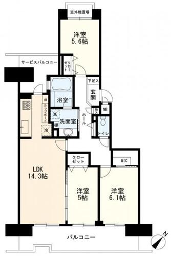 バルコニー / バス・トイレ別 / 洗濯機置き場(有) / ウォークインクローゼット / クローゼット