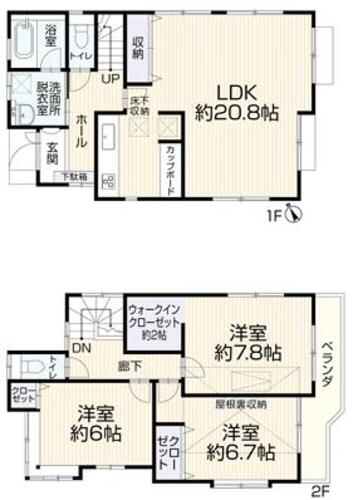 専用庭 / バルコニー / バス・トイレ別 / 温水洗浄便座 / シャワー付洗面化粧台 / 独立洗面台 / 追焚機能 / 浴室乾燥機 / ウォークインクローゼット / 全居室収納