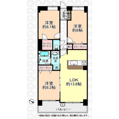バルコニー / 温水洗浄便座 / シャワー付洗面化粧台 / 浴室乾燥機 / クローゼット