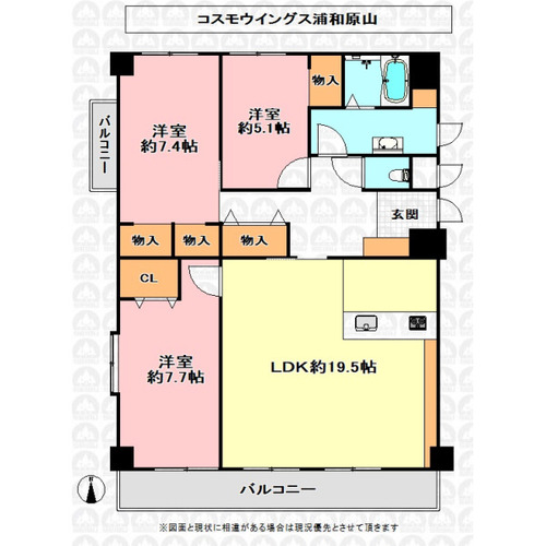 バルコニー / 南面バルコニー / 温水洗浄便座 / シャワー付洗面化粧台 / 追焚機能 / 浴室乾燥機 / クローゼット