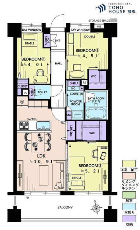 3LDK / 58.0㎡(専有面積)