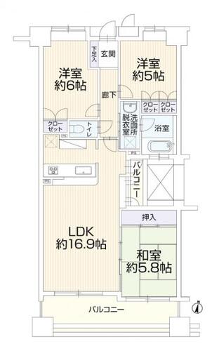 3LDK / 72.98㎡(専有面積)