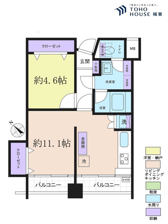 バルコニー / 南面バルコニー / バス・トイレ別 / 追焚機能 / 浴室乾燥機 / 温水洗浄便座 / 独立洗面台 / 洗濯機置き場(室内) / 洗濯機置き場(有) / クローゼット / シューズボックス / 全居室収納