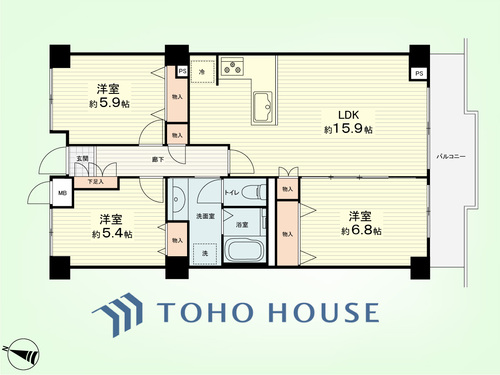 3LDK / 68.4㎡(専有面積)