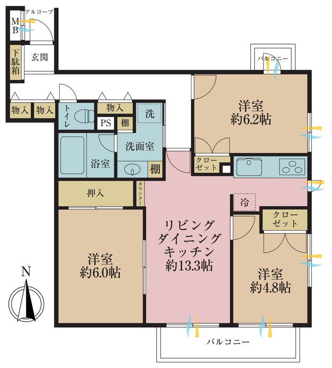 3LDK / 72.63㎡(専有面積)