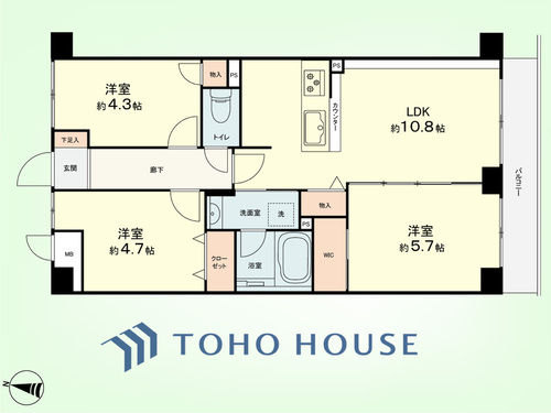 3LDK / 57.75㎡(専有面積)