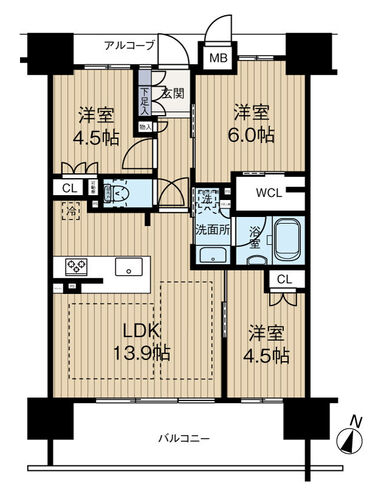 | バルコニー | 有 13.1㎡ | 主要採光面 | 南 |