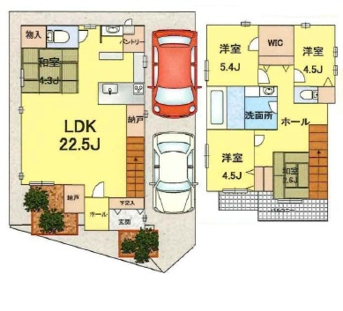 | 担当者コメント | LDK22帖以上に和室まであり将来1階だけでも完結できる間取り♪ カースペース2台駐車可(車種による)でセカンドカーをお持ちの方にもお勧めです♪ 是非お気軽にご相談ください♪ |