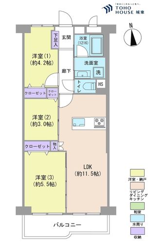 3LDK / 55.0㎡(専有面積)
