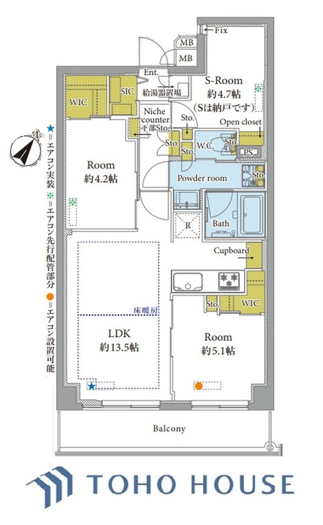 バルコニー / ワイドバルコニー / バス・トイレ別 / オートバス / 追焚機能 / 浴室乾燥機 / 温水洗浄便座 / シャワー付洗面化粧台 / 独立洗面台 / 脱衣所あり / 洗濯機置き場(室内) / 洗濯機置き場(有) / ウォークインクローゼット / クローゼット / シューズインクローゼット / シューズボックス / 全居室収納