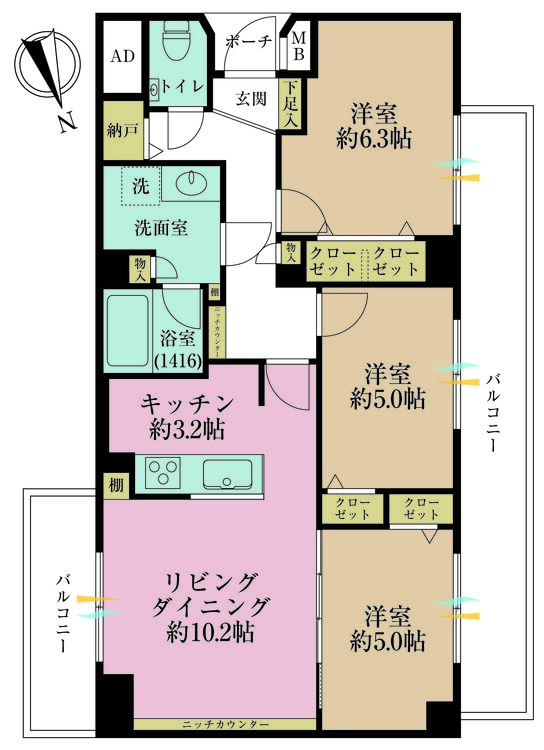 3SLDK / 70.81㎡(専有面積)