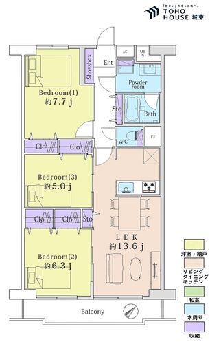 3LDK / 74.75㎡(専有面積)