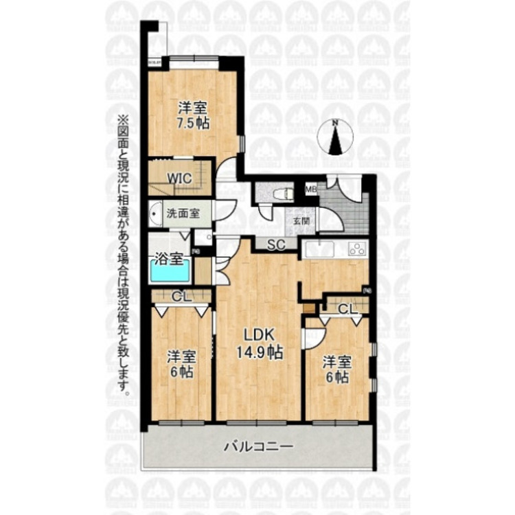 バルコニー / 南面バルコニー / 温水洗浄便座 / シャワー付洗面化粧台 / ウォークインクローゼット / クローゼット