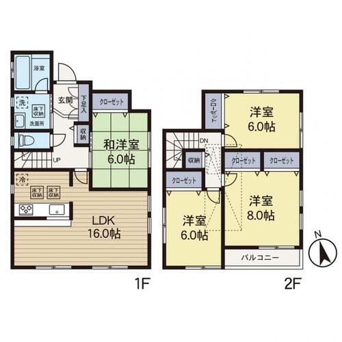 床暖房 / バルコニー / バス・トイレ別 / 独立洗面台 / 追焚機能 / 浴室乾燥機 / 床下収納 / 全居室収納