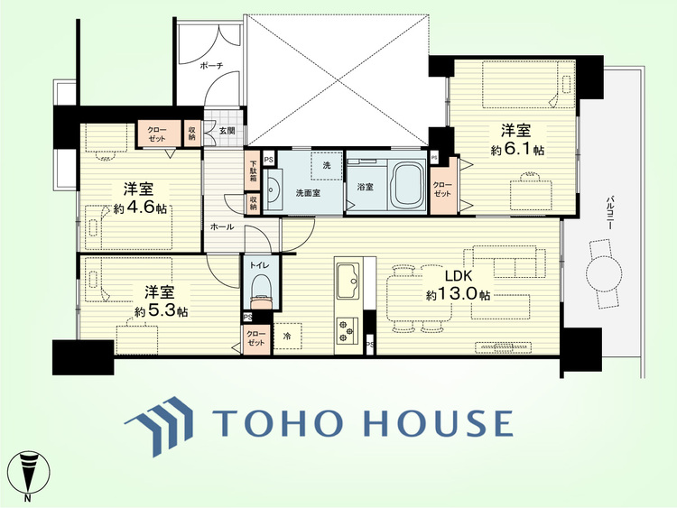 3LDK / 61.58㎡(専有面積)