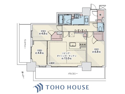 3LDK / 74.64㎡(専有面積)