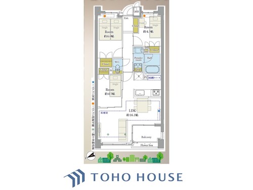 3LDK / 66.34㎡(専有面積)