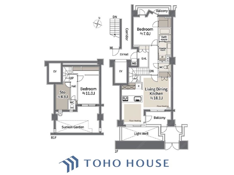 新宿×100平米超×メゾネット。サンクンガーデンが彩る、戸建感覚のプレミアム・リノベーション邸宅。