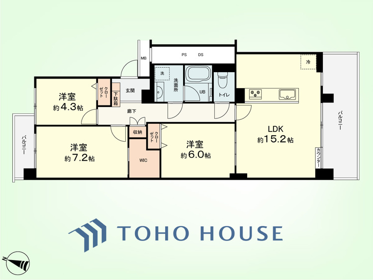 3LDK / 74.16㎡(専有面積)