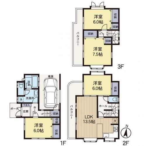 ワイドバルコニー / 温水洗浄便座 / シャワー付洗面化粧台 / 追焚機能 / 浴室乾燥機 / 全居室収納