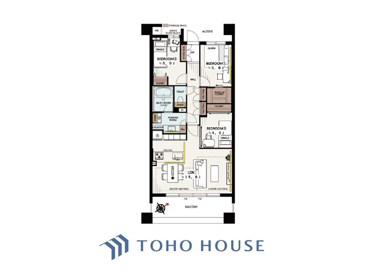 床暖房 / バルコニー / 南面バルコニー / バス・トイレ別 / オートバス / 追焚機能 / 浴室乾燥機 / 温水洗浄便座 / シャワー付洗面化粧台 / 独立洗面台 / 洗濯機置き場(室内) / 洗濯機置き場(有) / ウォークインクローゼット / クローゼット / シューズボックス / 全居室収納