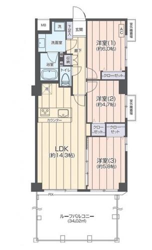 3LDK / 68.4㎡(専有面積)