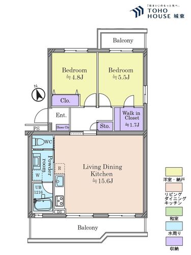 2LDK / 58.59㎡(専有面積)