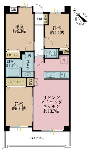 3LDK / 64.52㎡(専有面積)