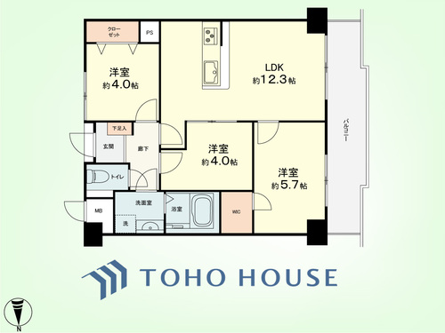 3LDK / 57.87㎡(専有面積)
