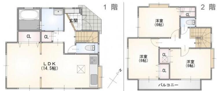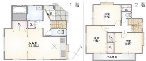 | 備考 | 駐車場:空有 システムキッチン、浄水器、シャワー、シャワー付き洗面化粧台、温水洗浄便座、トイレ2ヶ所、追焚き給湯、フローリング、全居室フローリング、浴室に窓、浴室乾燥機、床下収納×2、全居室収納スペース、トイレ収納、全居室6帖以上、網戸付、バルコニー、出窓、シャッター雨戸、TVインターホン、外壁サイディング、ハウスクリーニング、バス1坪以上、全室南東・南西向き、全居室2面採光、駐車場2台分(車種による) |