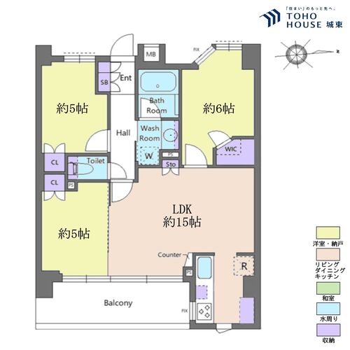 3LDK / 65.34㎡(専有面積)