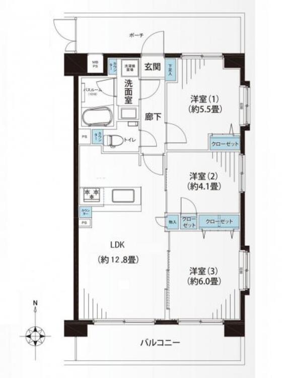 3LDK / 61.38㎡(専有面積)