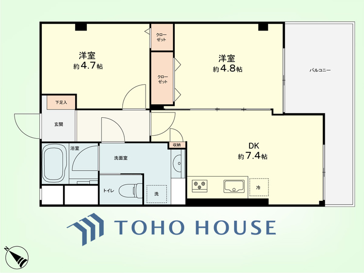 2DK / 45.36㎡(専有面積)