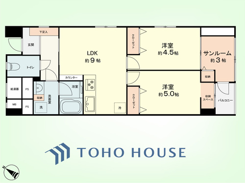 バルコニー / 南面バルコニー / バス・トイレ別 / オートバス / 追焚機能 / 浴室乾燥機 / 温水洗浄便座 / 独立洗面台 / 脱衣所あり / 洗濯機置き場(室内) / 洗濯機置き場(有) / クローゼット / シューズボックス / 全居室収納