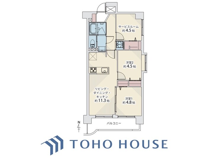 バルコニー / 南面バルコニー / バス・トイレ別 / 追焚機能 / 浴室乾燥機 / 温水洗浄便座 / シャワー付洗面化粧台 / 独立洗面台 / 脱衣所あり / 洗濯機置き場(室内) / 洗濯機置き場(有) / ウォークインクローゼット / クローゼット / シューズボックス / 全居室収納