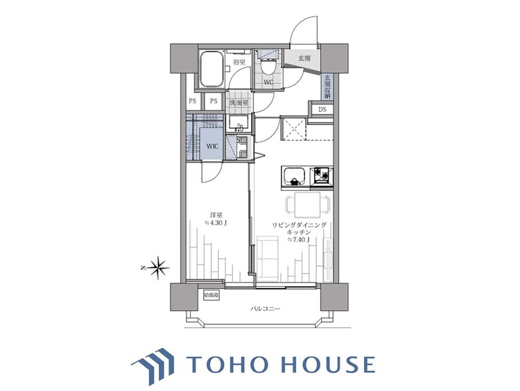 バルコニー / バス・トイレ別 / 追焚機能 / シャワー付洗面化粧台 / 独立洗面台 / 脱衣所あり / 洗濯機置き場(室内) / 洗濯機置き場(有) / ウォークインクローゼット / クローゼット / シューズボックス / 全居室収納
