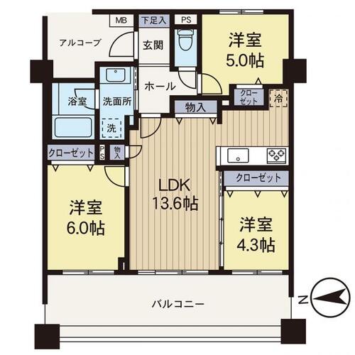 3LDK / 64.4㎡(専有面積)