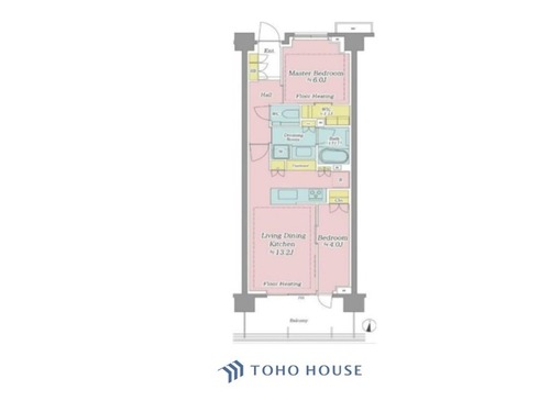 床暖房 / バルコニー / 南面バルコニー / バス・トイレ別 / オートバス / 追焚機能 / 浴室乾燥機 / 温水洗浄便座 / シャワー付洗面化粧台 / 独立洗面台 / 脱衣所あり / 洗濯機置き場(室内) / 洗濯機置き場(有) / ウォークインクローゼット / クローゼット / シューズボックス / 全居室収納