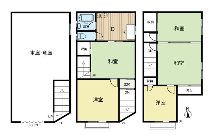 車庫付き3階建戸建が新規登場♪4DK、リフォームの土台にも適した物件♪