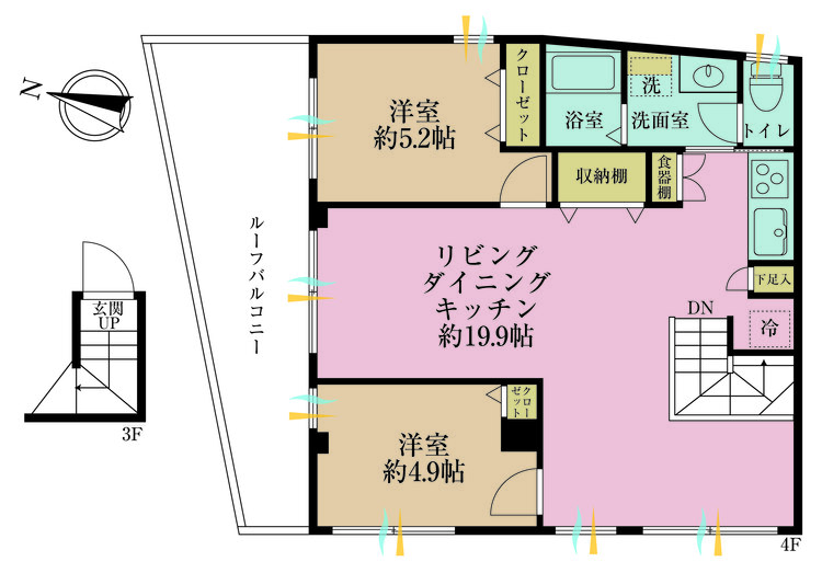 | バルコニー | 主要採光面 | 北西 |