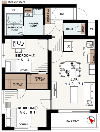 2LDK / 57.33㎡(専有面積)